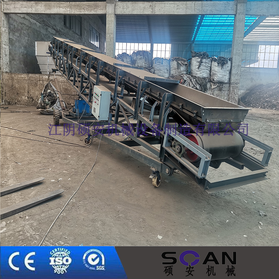 江阴硕安机械设备制造有限公司的可移动自动升降皮带机操作简单,运行平稳。可多种结构,多种升降方式可供参考。根据输送工艺的要求,可以单机输送,也可以多台或与其它输送机组成水平或倾斜的输送系统。以下图片为液压站式升降可移动皮带机。